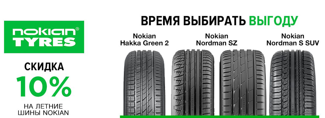 Успейте приобрести в «Центре шин» летние шины Nokian со скидкой 10%!