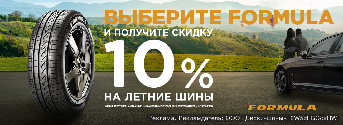 - При покупке комплекта (от 4-х) летних шин FORMULA предоставляется скидка 10%.