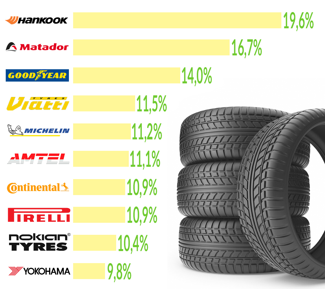 В результате лидером рейтинга оказались покрышки корейского производителя Hankook, выбор в пользу которых сделало 19,6% участников опроса. На второй позиции оказалась продукция бренда Matador, на которой свой выбор остановило 16,7%. Стоит отметить, что производство данной резины в числе прочего налажено и на территории России. На третьем месте оказалась шины Goodyear, за которые высказалось 14% автовладельцев.